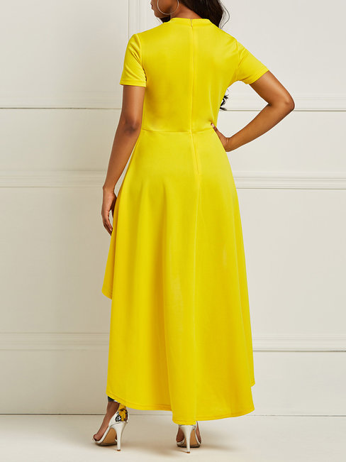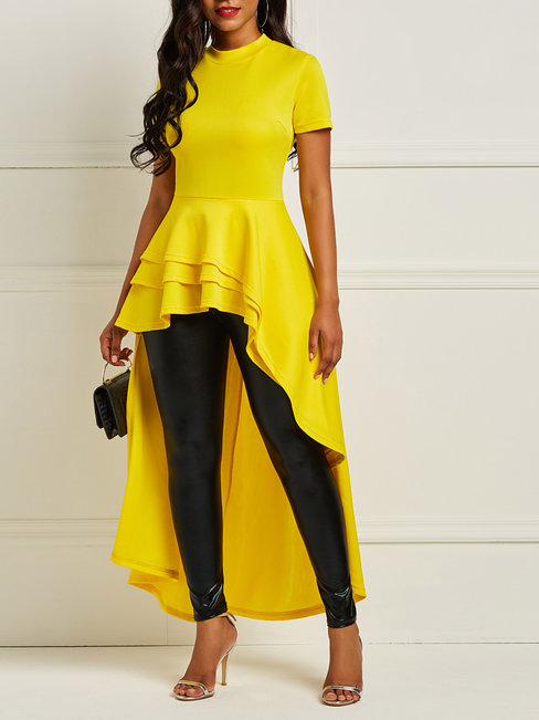 - Yellow Long Western Plain Spandex Asymmetrical T Shirt (Style V200903)