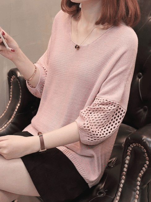 Elegant sweater! Its fabric is fine, and the hollow out area of the sleeves are delicate. The fitting size looks very pretty!