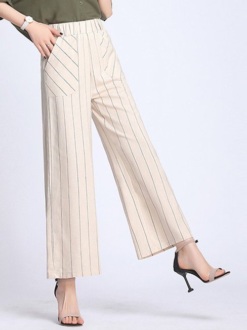 Beige Loose Office Pattern Cotton Striped Pants (Style V102251)