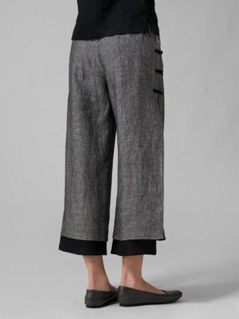 Grey Loose Slow Life Strappy Linen Plain Pants (Style V102418)