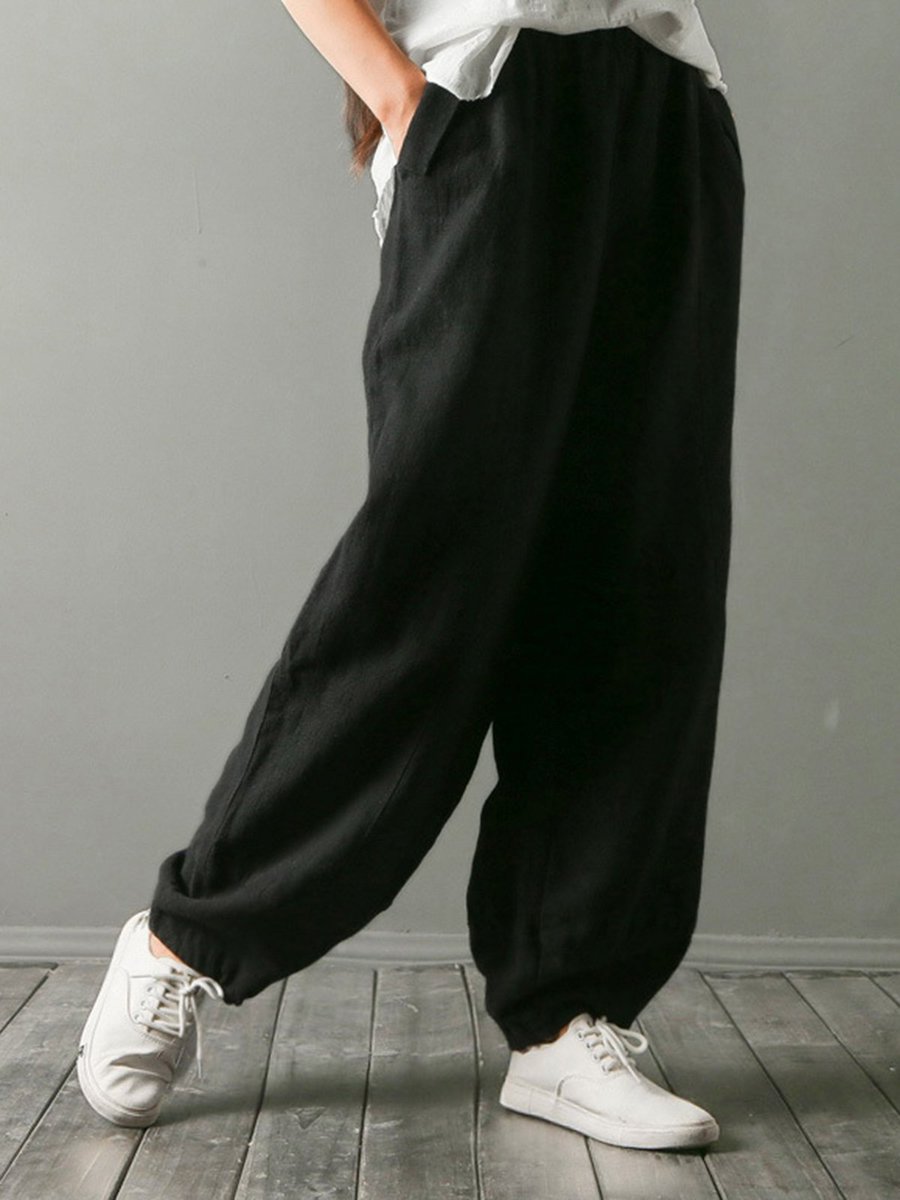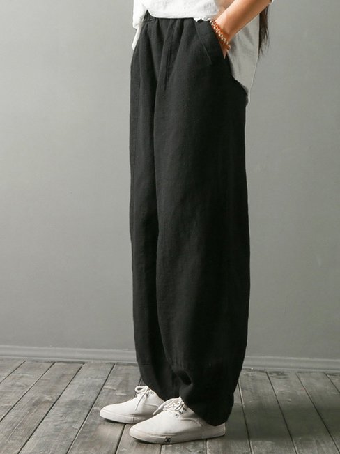 2. Ankle Length Loose Slow Life Pockets Polyester Pants (Style V102449)