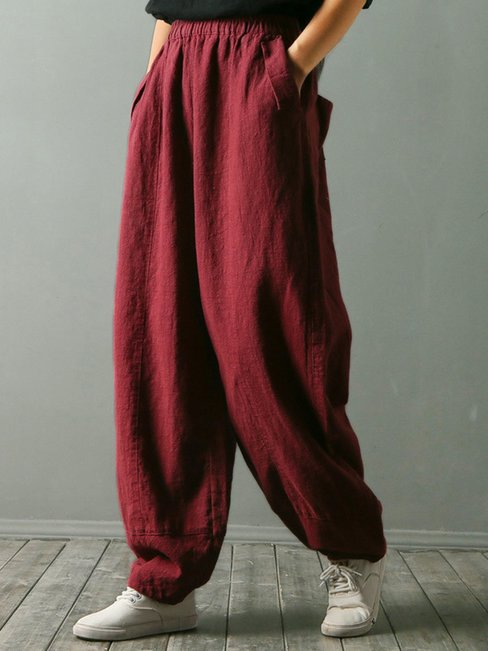 Stylish loose pants! The cotton cloth is fine and the loose design looks casual and chic! This is the first time I try dark red, looking much better than I thought!