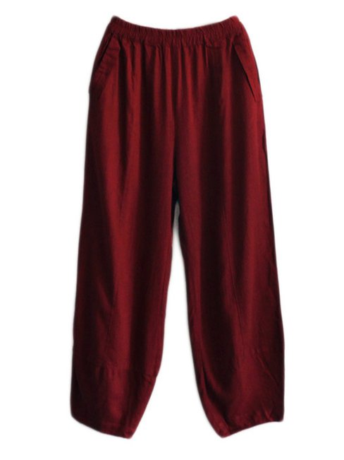 Stylish loose pants! The cotton cloth is fine and the loose design looks casual and chic! This is the first time I try dark red, looking much better than I thought!