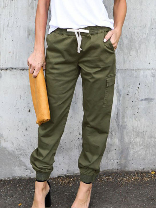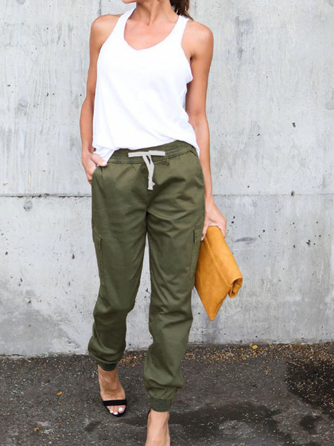 - Green Maxi Elegant Strappy Cotton Blends Plain Pants (Style V102331)