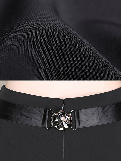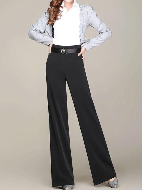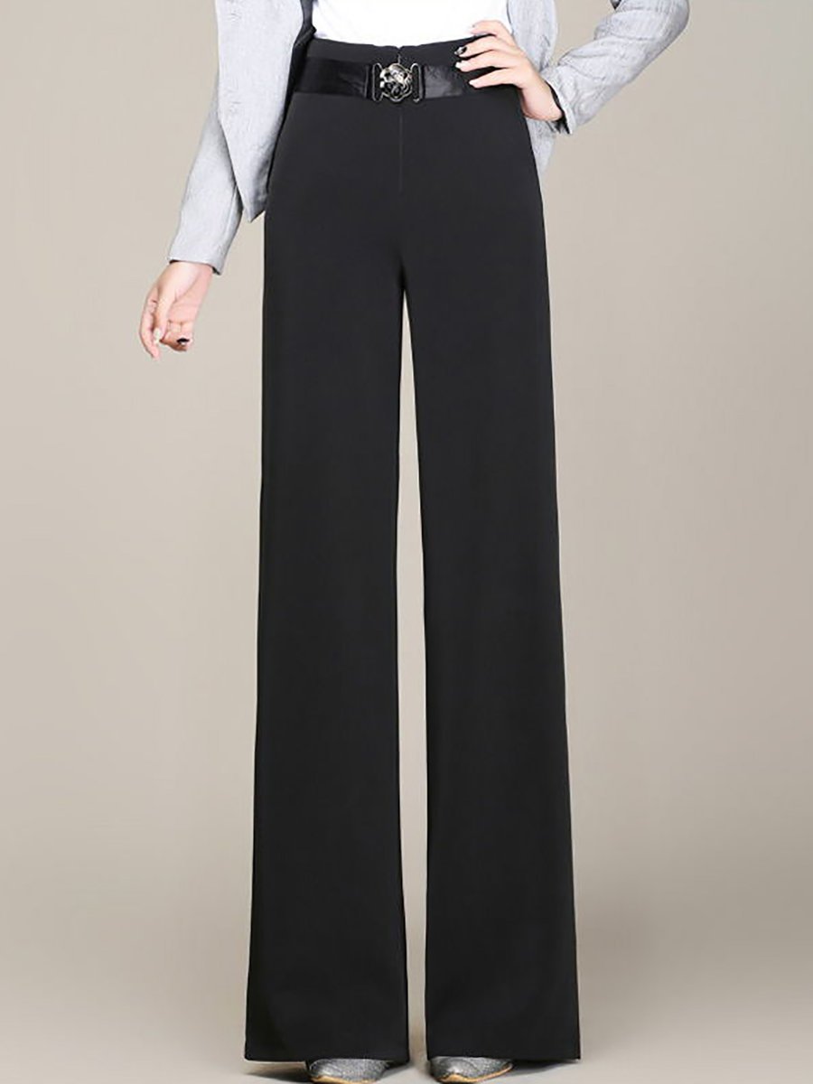 Black Maxi Loose Elegant Belt Plain Pants (Style V102293)