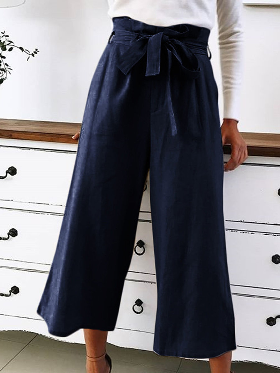 - Dark Blue Maxi Loose Elegant Belt Polyester Pants (Style V102317)