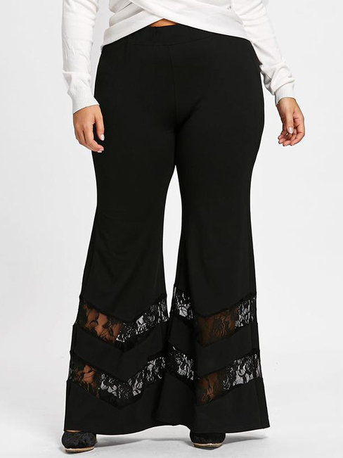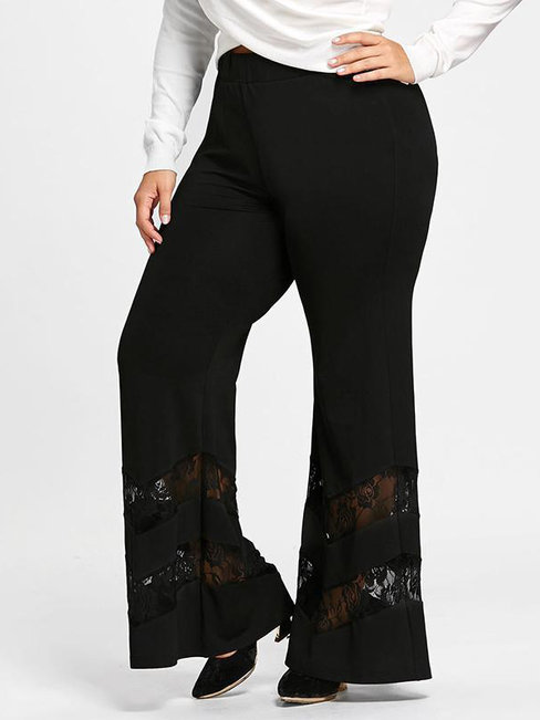 - Black Maxi Loose Elegant Patchwork Plain Pants (Style V102372)