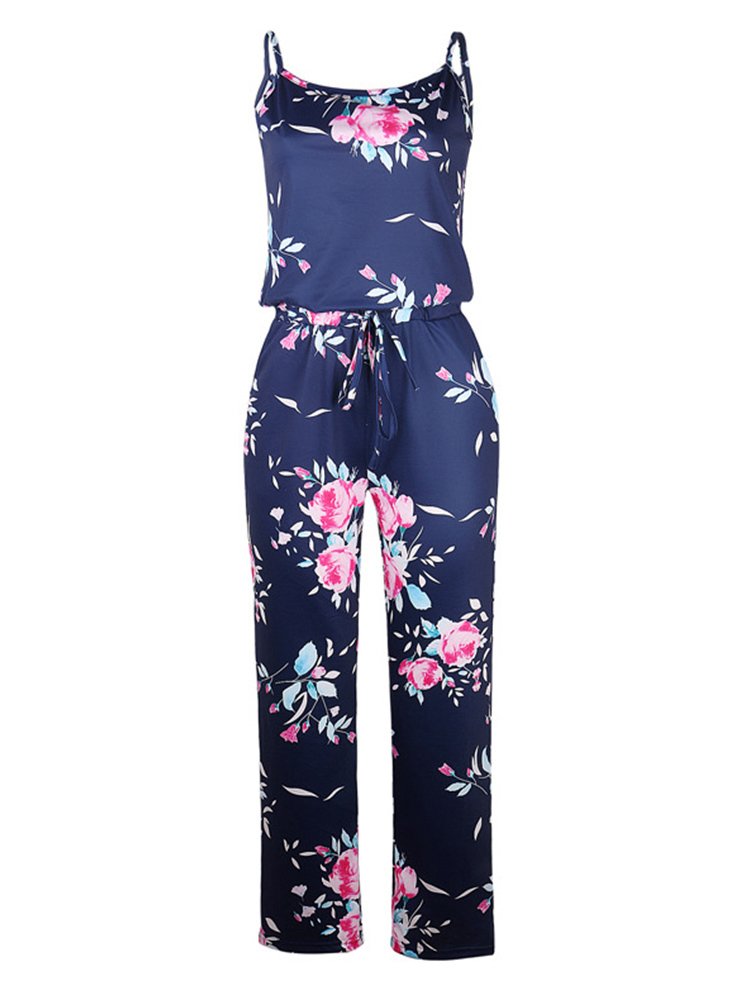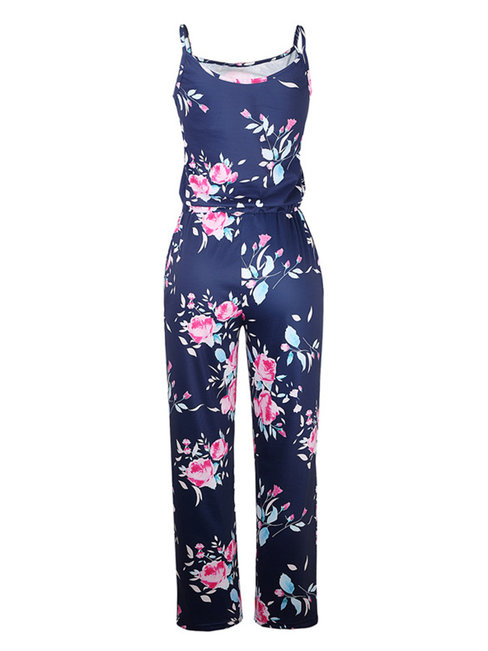 - Blue Maxi Loose Floral Polyester Backless Jumpsuit (Style V200823)