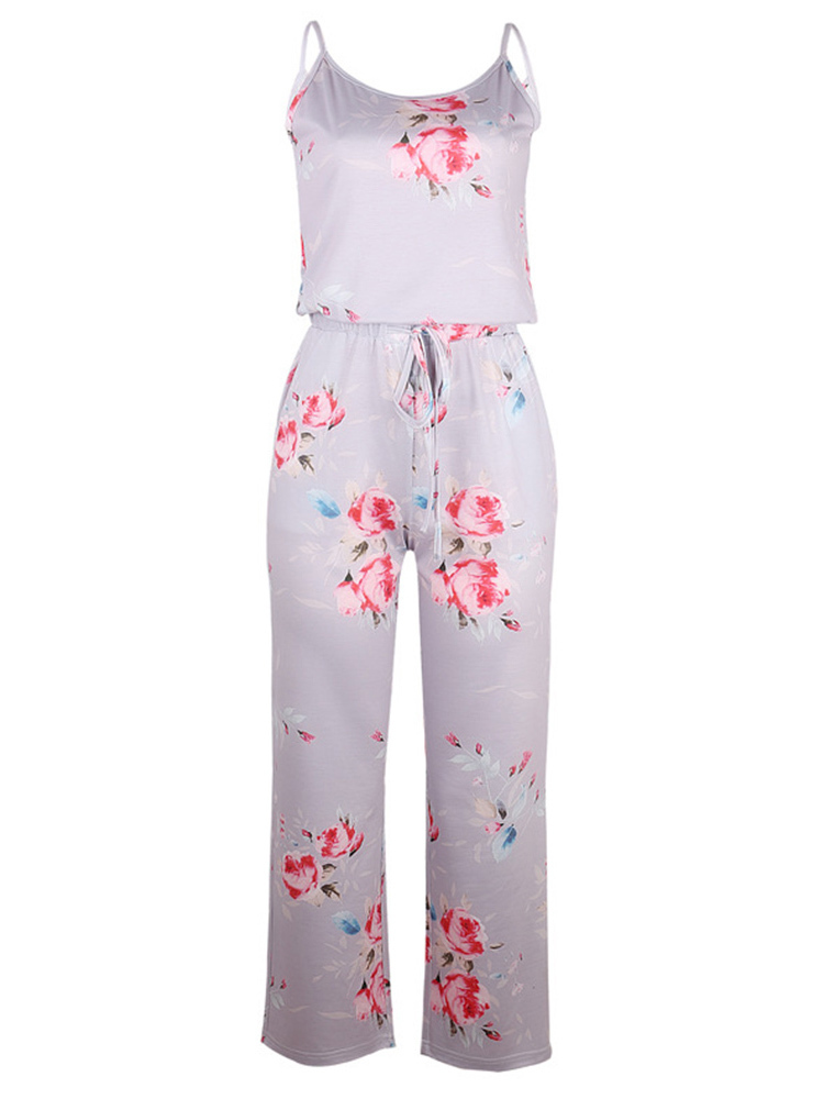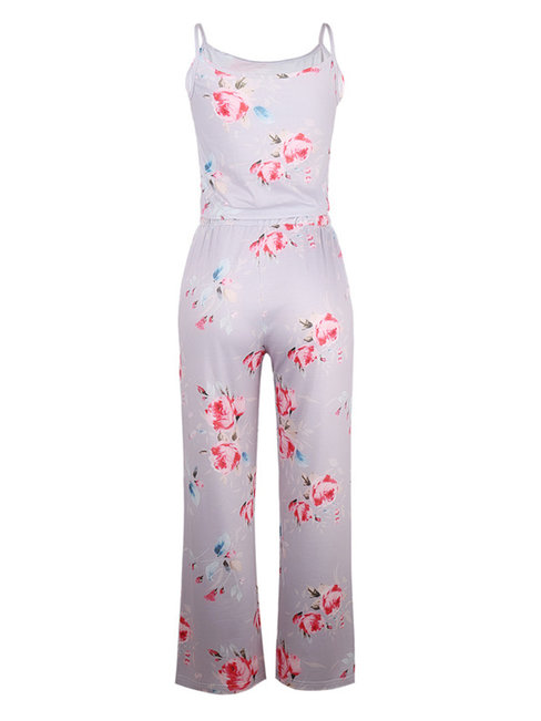 - Khaki Maxi Loose Floral Polyester Backless Jumpsuit (Style V200823)