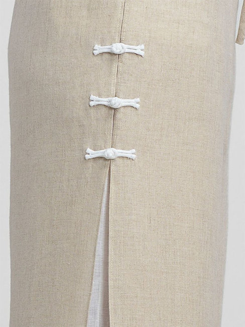 - White Maxi Loose Slow Life Button Cotton Blends Pants (Style V102384)