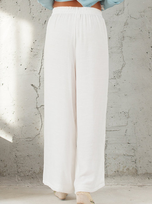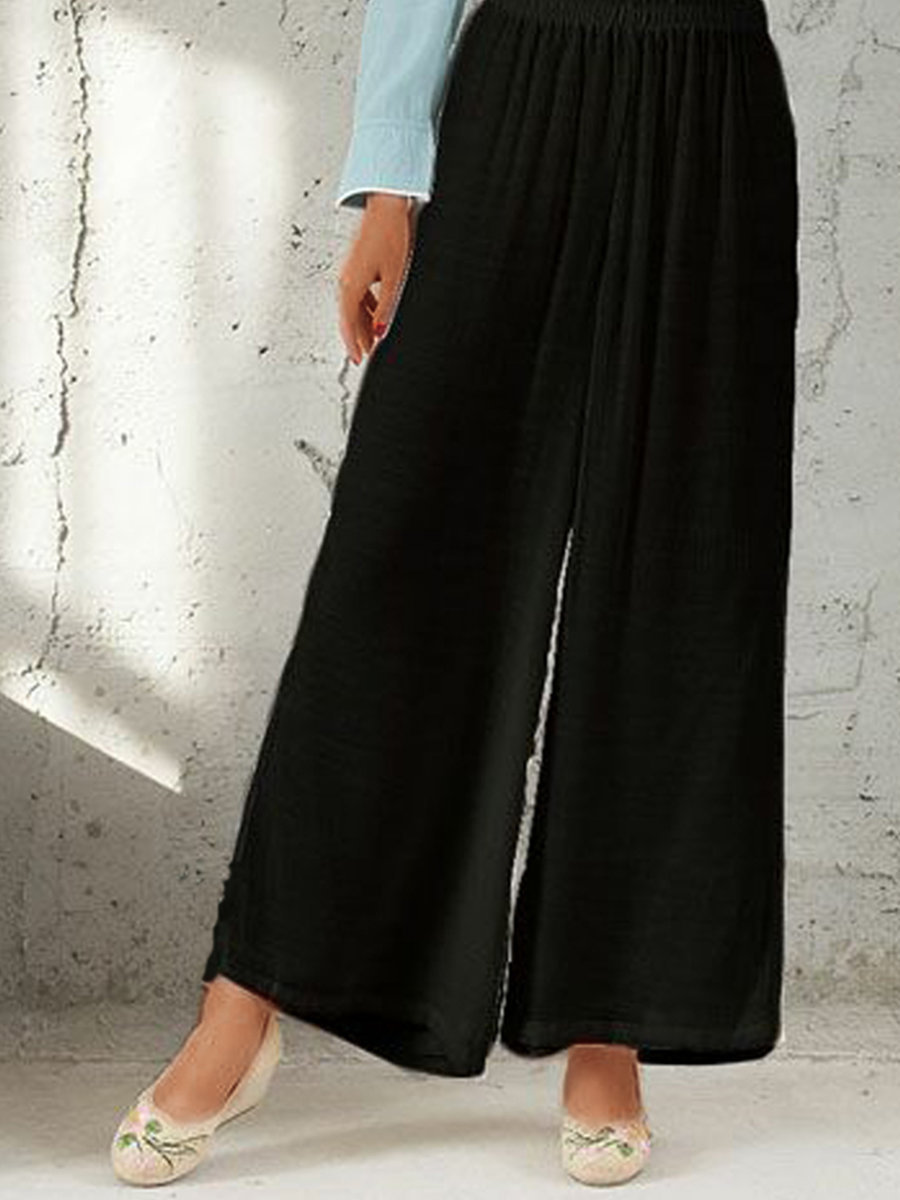 - Black Maxi Loose Slow Life Cotton Blends Plain Pants (Style V102395)