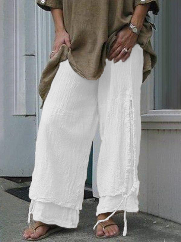- White Maxi Loose Slow Life Pockets Plain Pants (Style V102314)