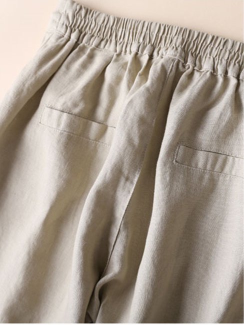 - Beige Maxi Loose Slow Life Strappy Plain Pants (Style V102426)