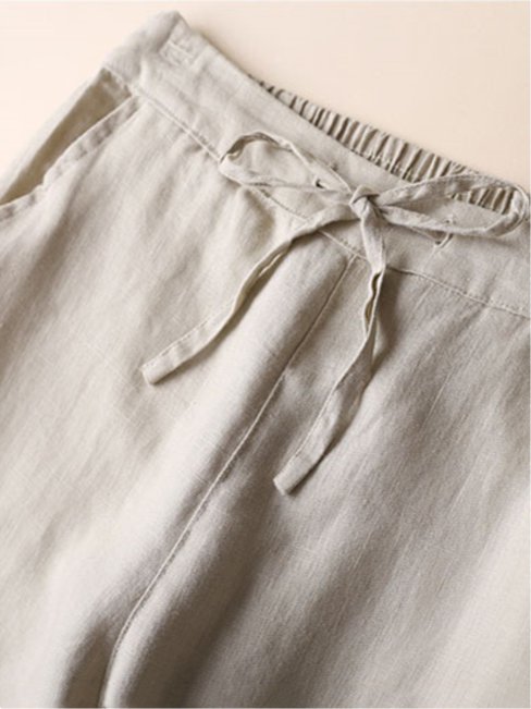- White Maxi Loose Slow Life Strappy Plain Pants (Style V102426)