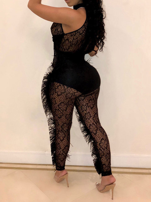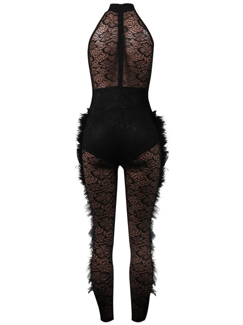 Black Maxi Skinny Party Plain Hollow Out Jumpsuit (Style V201340)
