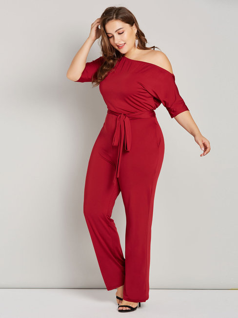 - Burgundy Maxi Skinny Sexy Plain Strappy Jumpsuit (Style V200912)