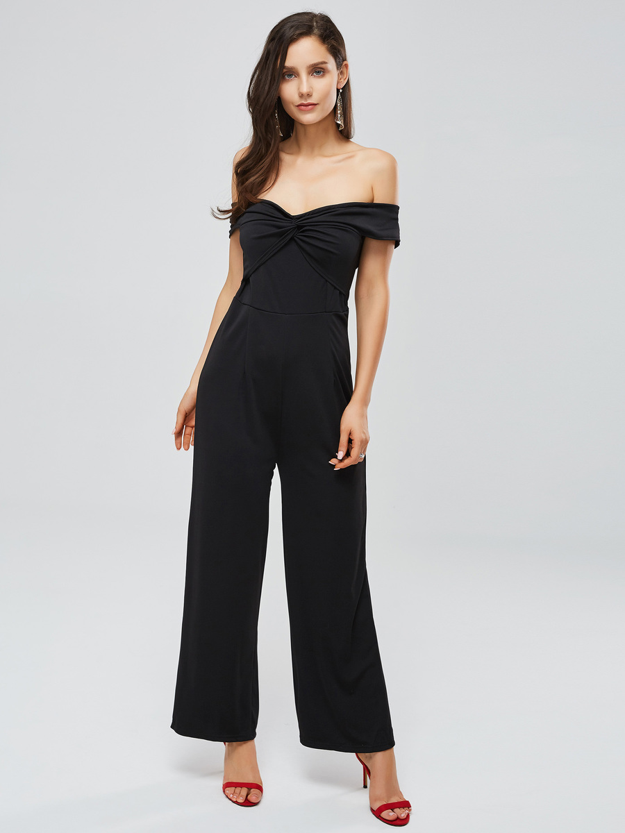- Black Maxi Slim Elegant Plain Backless Jumpsuit (Style V200646)