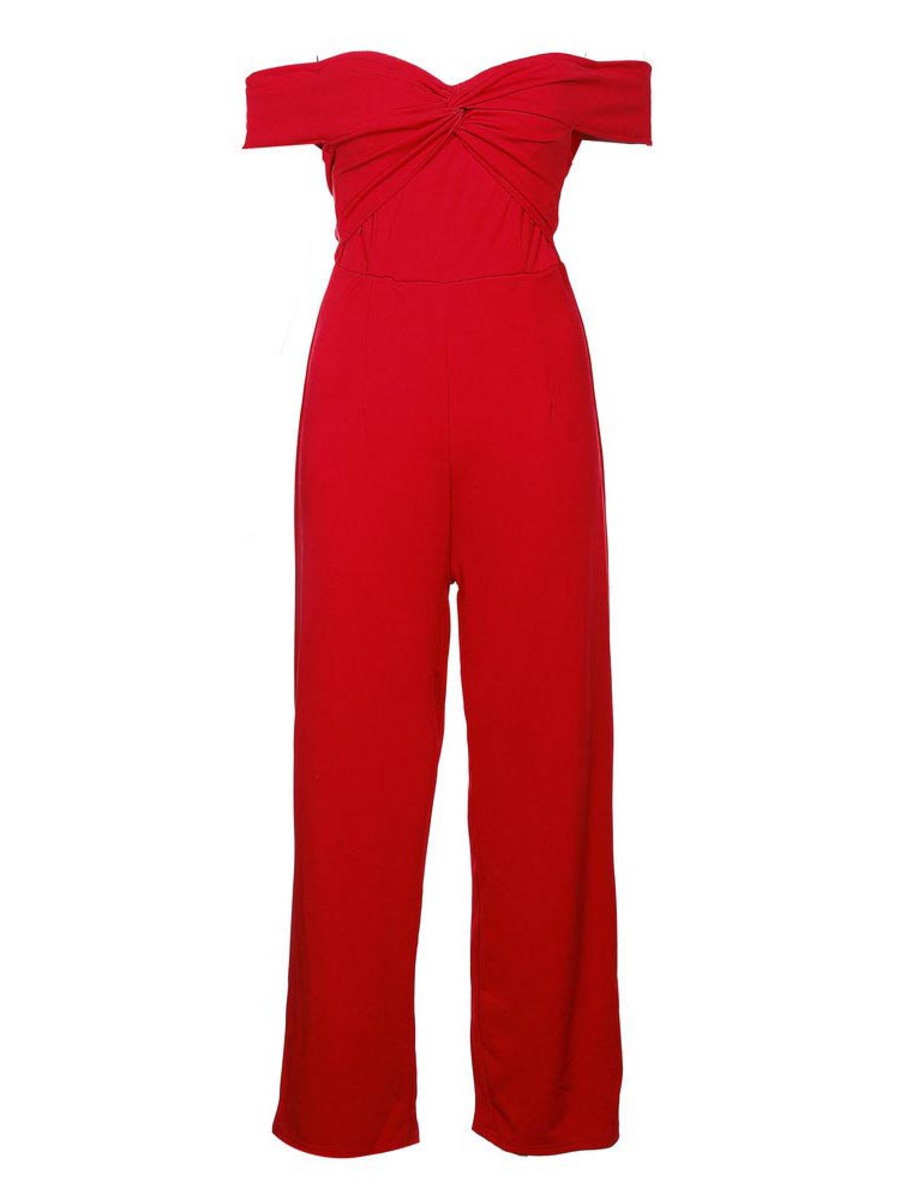 - Red Maxi Slim Elegant Plain Backless Jumpsuit (Style V200646)