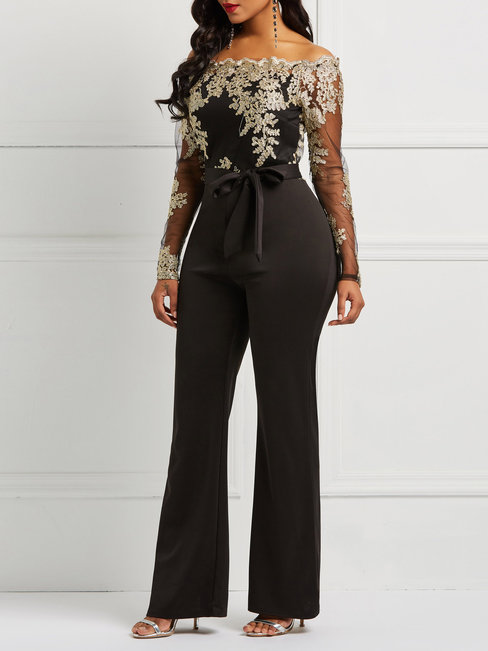 - Golden Maxi Slim Sexy Patchwork Jumpsuit (Style V200969)
