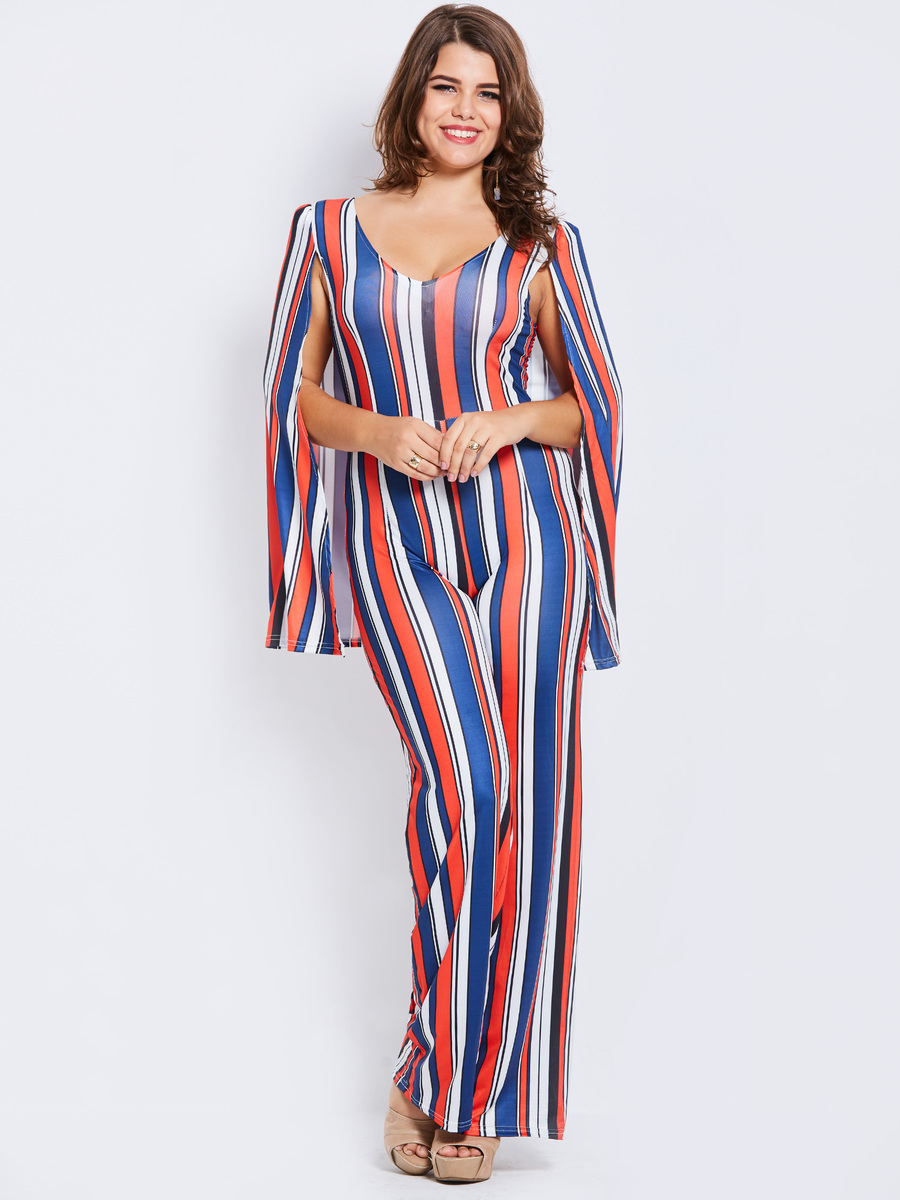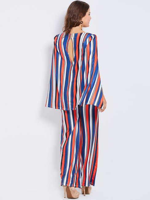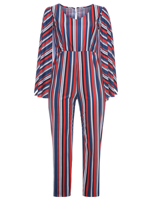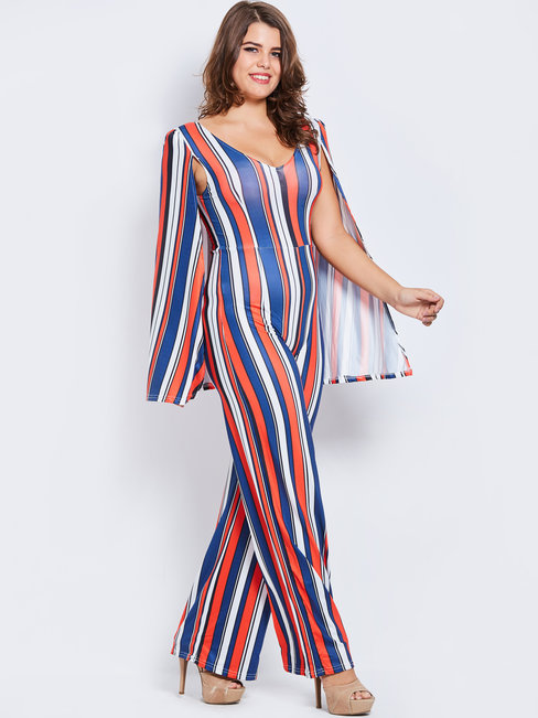 - Red Maxi Slim Striped Polyester Jumpsuit (Style V200207)