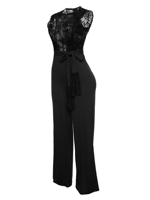 - Black Maxi Slim Western Plain Strappy Jumpsuit (Style V200802)