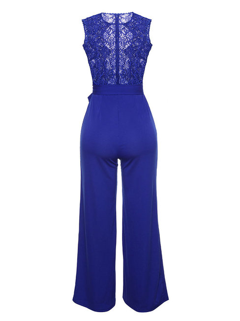 - Blue Maxi Slim Western Plain Strappy Jumpsuit (Style V200802)