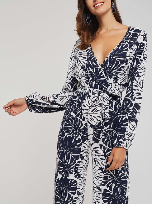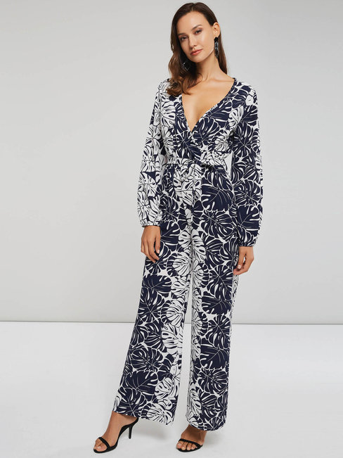 - Black Maxi Slim Western Plants Pattern Jumpsuit (Style V200897)