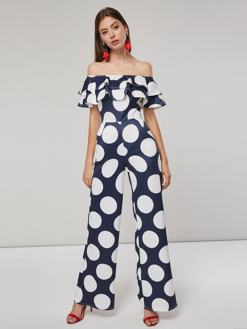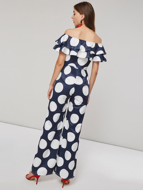 - Black Maxi Slim Western Spandex Cascading Ruffle Jumpsuit (Style V200938)