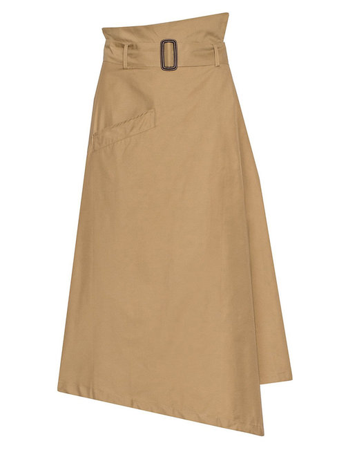 - Khaki Mid-Calf Asymmetrical Belt Polyester Plain Skirt (Style V101883)