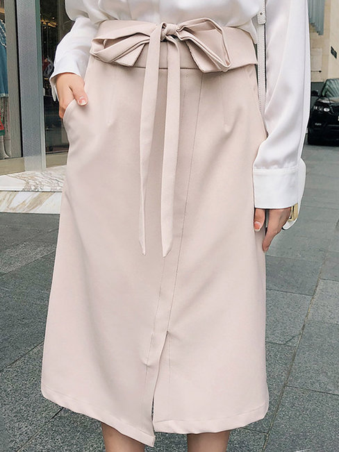 Pink Mid-Calf Date Night Patchwork Polyester Plain Skirt (Style V201878)