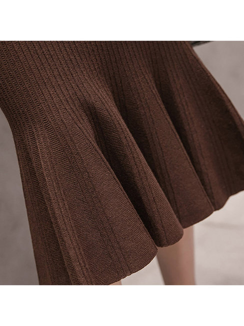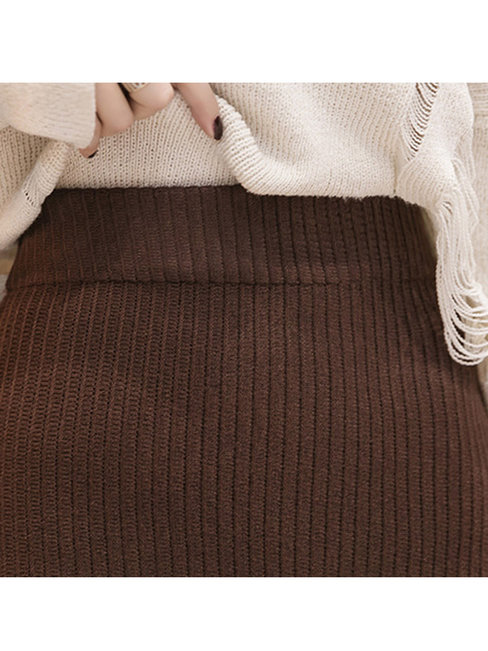 Light Gray Mid-Calf Mermaid Office Knitted Plain Skirt (Style V201865)