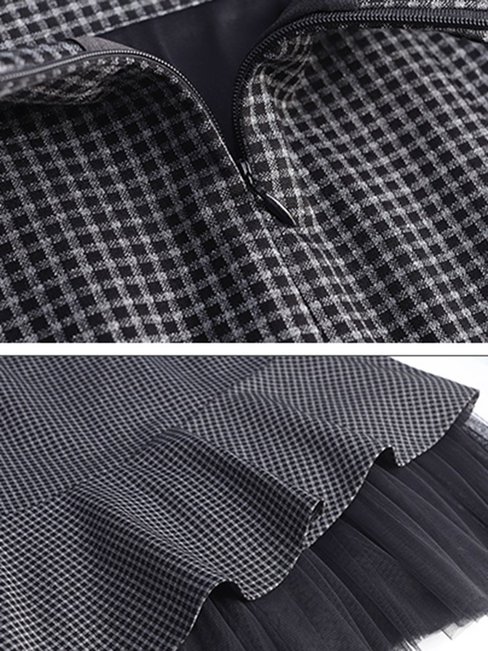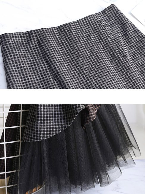 2. Knee Length A-line Elegant Pattern Plaid Skirt (Style V201896)