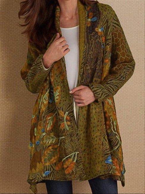 - Khaki Midi Date Night Floral Cotton Pattern Coat (Style V102561)