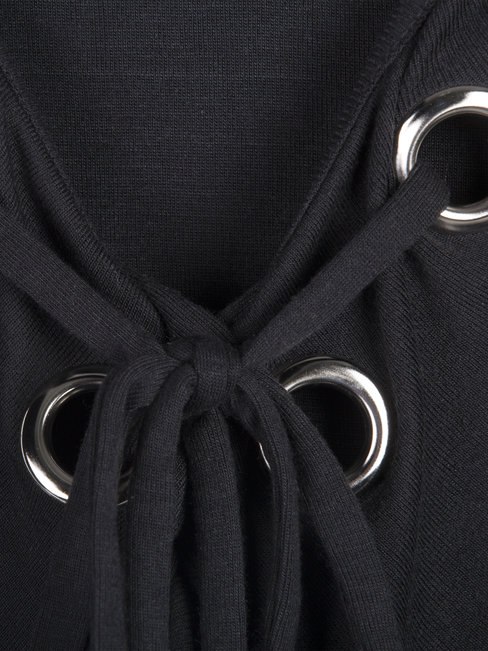 - Black Midi Slim Plain Cotton Blends Strappy T Shirt (Style V200026)