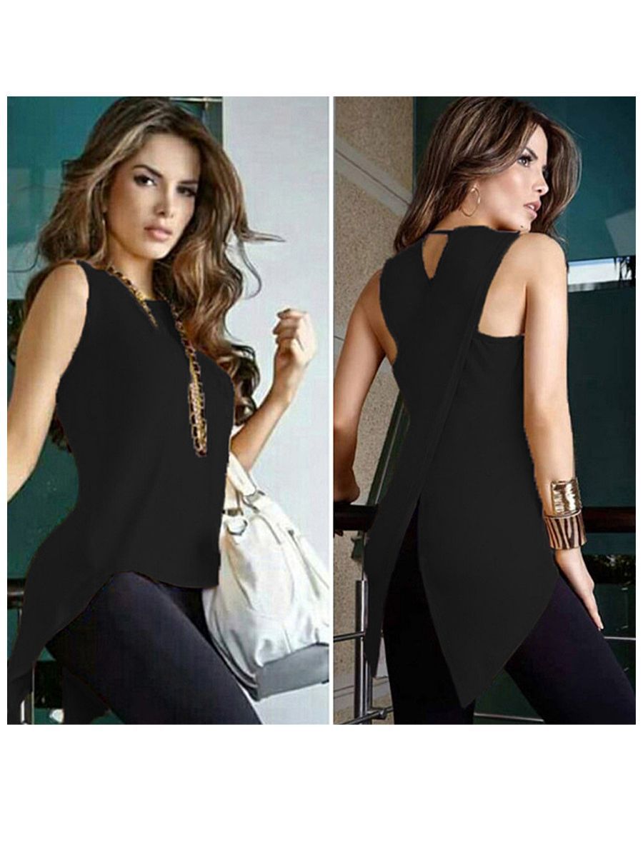 - Black Midi Slim Western Plain Asymmetrical Blouse (Style V201538)