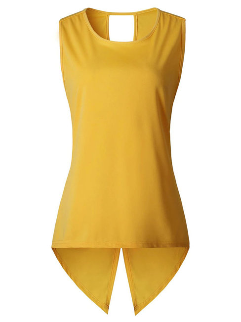 Yellow Midi Slim Western Plain Asymmetrical Blouse (Style V201538)
