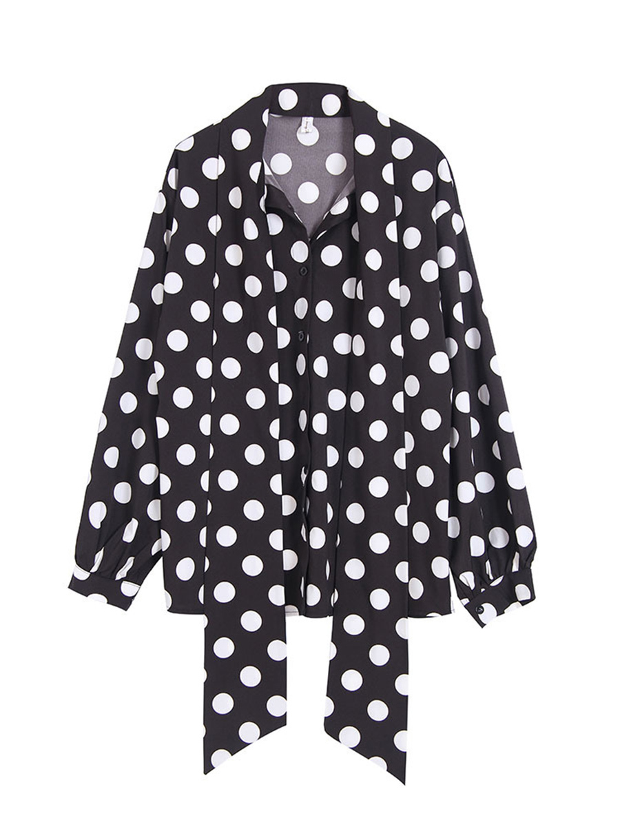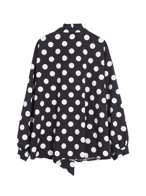 - Black Midi Straight Polka Dot Cotton Blends Asymmetrical Blouse (Style V200476)
