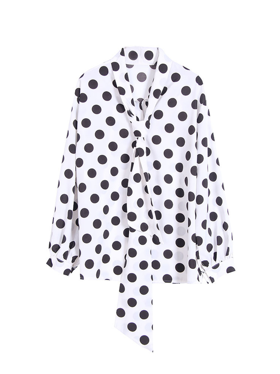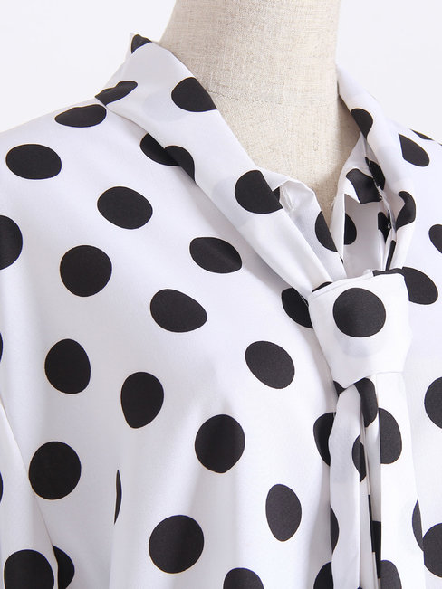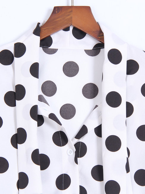 White Midi Straight Polka Dot Cotton Blends Asymmetrical Blouse (Style V200476)