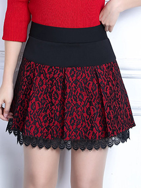 Red Mini A-line Date Night Polyester Plain Skirt (Style V101797)