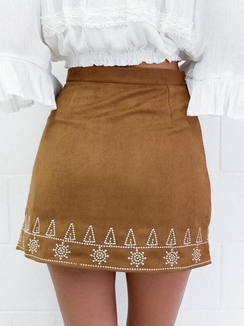 - Brown Mini Bodycon Casual Pattern Geometric Skirt (Style V102033)