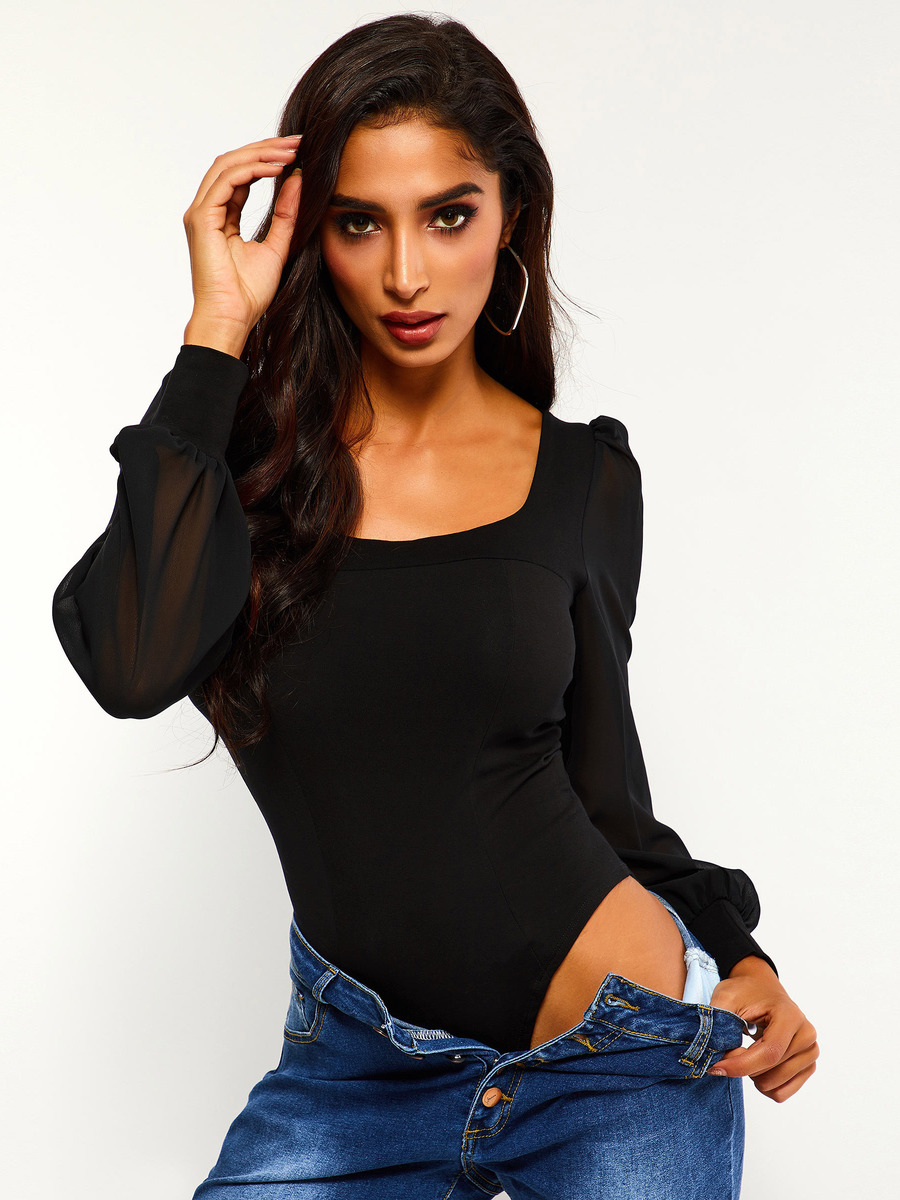 Black Mini Slim Casual Plain Cotton Blends Jumpsuit (Style V201155)