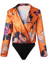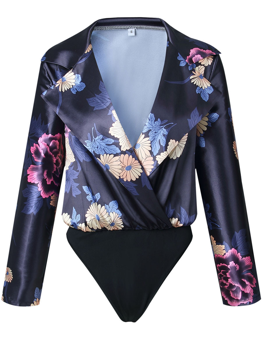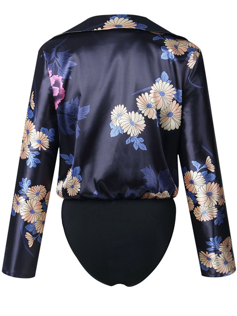 Dark Blue Mini Slim Western Floral Patchwork Jumpsuit (Style V200620)