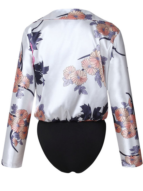 - White Mini Slim Western Floral Patchwork Jumpsuit (Style V200620)
