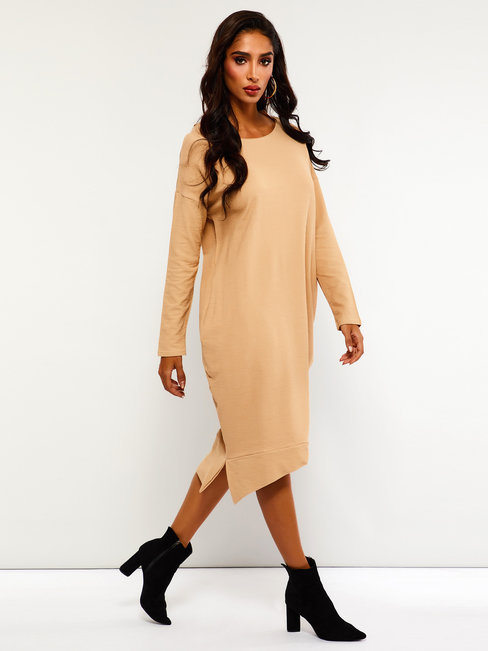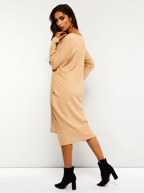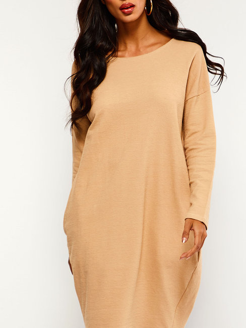 - Khaki Mori Girl Straight Plain Cotton Blends Midi Dresses (Style V200021)