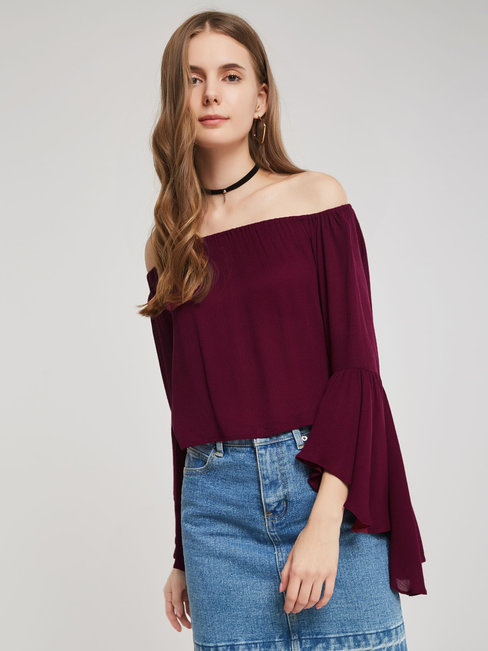 Cute off shoulder and puff sleeves design! I love its casual style, and the fabric is draping well. Its price is very cheap, totally worth!