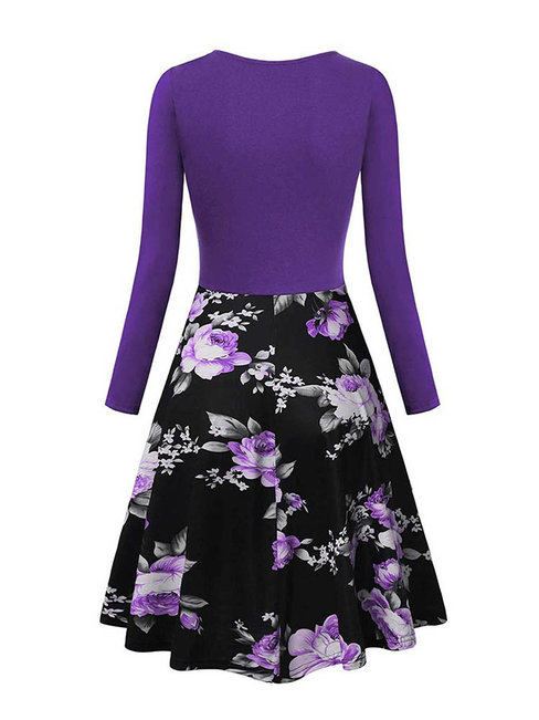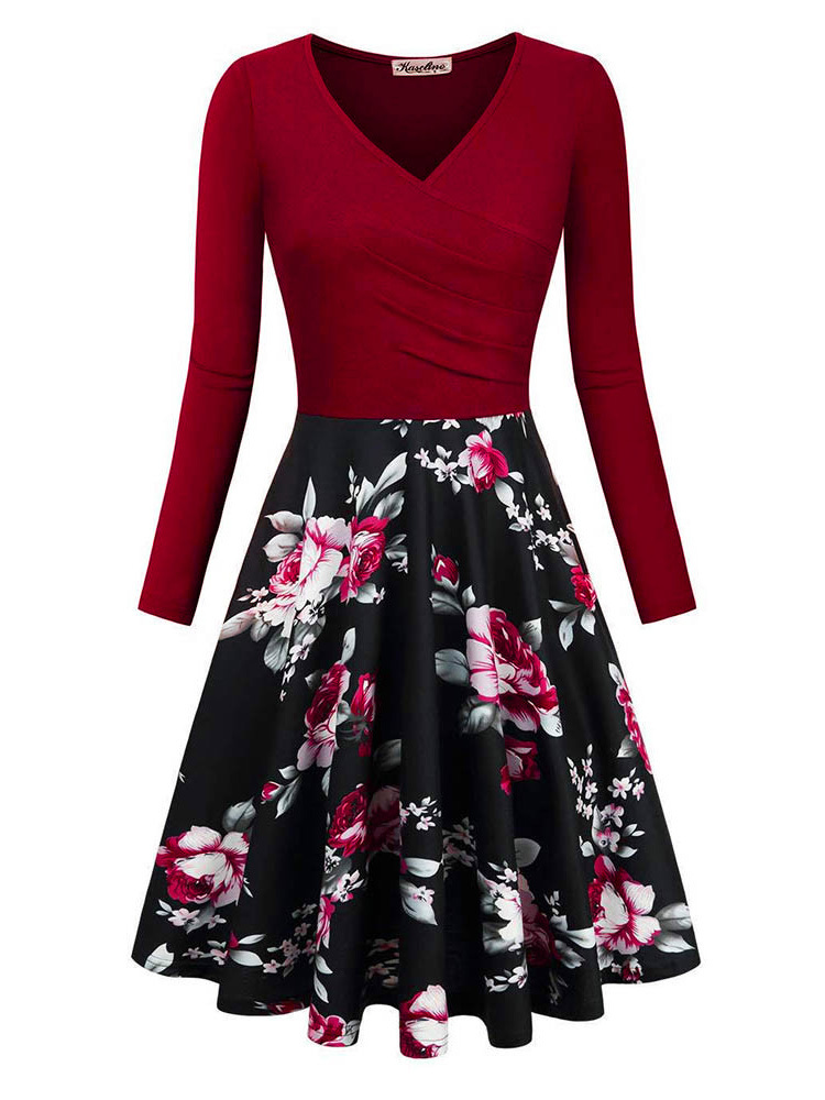 - Burgundy Office A-line V-neck Patchwork Knee Length Dresses (Style V201125)