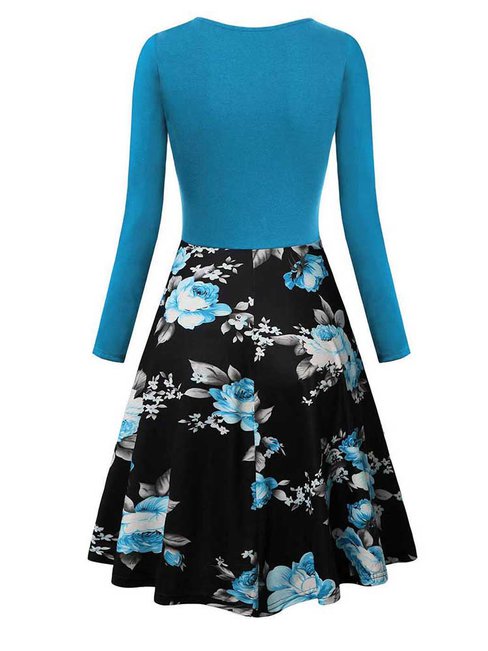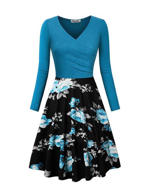 - Light Blue Office A-line V-neck Patchwork Knee Length Dresses (Style V201125)