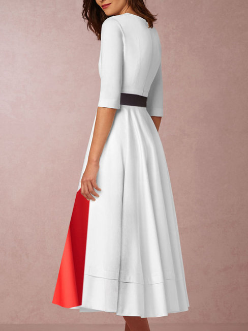 White Party A-line Deep V Neck Zipper Polyester Midi Dresses (Style V100507)