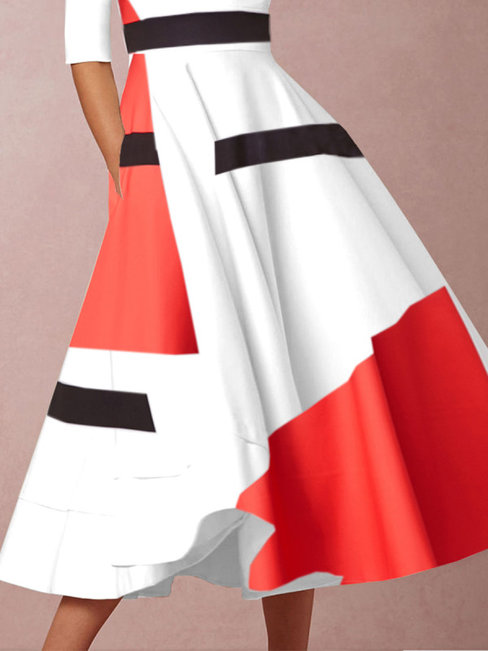 7. Western A-line Round Neck Striped Knee Length Dresses (Style V200635)