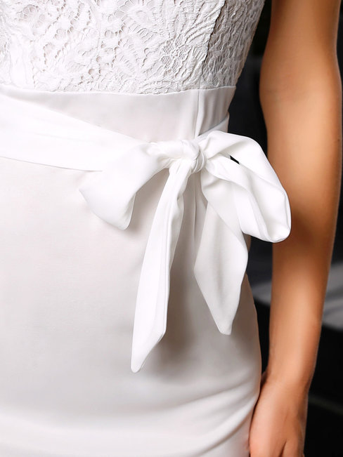 - White Party Bodycon Round Neck Solid Color Patchwork Mini Dresses (Style V300974)